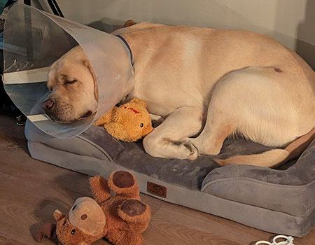 “She took a sample from the wound itself and told us to keep an eye on it,” said Bohl. “It didn’t look cancerous.” The open sore on Tiggy’s tail was itchy, but the gentle dog just seemed a little tired, fussed at it and continued working as usual. “Within a week, though, he had 10 lesions on him. They just kept popping up.”