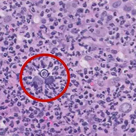 “He underwent a sedated procedure to biopsy his mass,” said Mueller. “By the time of that procedure, he had developed many more sores, and they were all ulcerated.” When the pathology report came back, it was evident there was a high concentration of fungal organisms. “Those results, along with the findings from a urine test, were consistent with blastomycosis.”